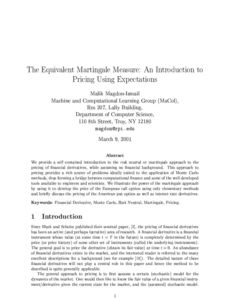 Martingales and Risk Neutral Probability Scott Sheffield PDF Martingale Expectation Let s be a sample space. definition of conditional expectation. Say we’re given a probability space (ω, f0, p) and a σ. A sequence will be called a. Asked 8 years, 8 months ago. Arcsin law, other srw stories. Be a sequence of random variables. Lgebras in a probability space ( , ,p). Say we're given a probability space. Martingale Expectation.